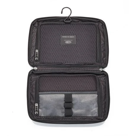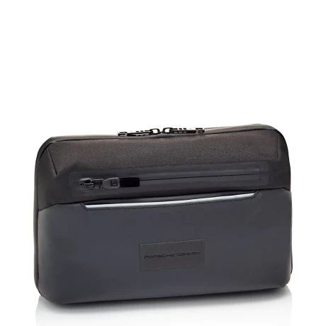 De Urban Eco Washbag L is een luxueuze toilletas van Porsche Design. De lichtgewicht Porsche Design Urban Eco Washbag L valt op het eerste gezicht op door zijn strakke design: een materiaalcombinatie van waterafstotend polyester en gecoate stof met gelamineerde ritsen en zwart metalen beslag.