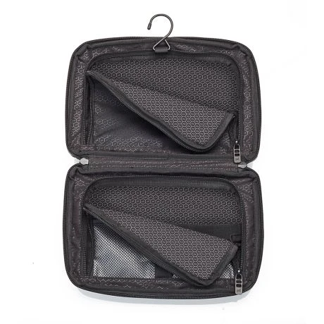De toillettas heeft twee hoofdvakken met ritssluiting met meerdere functionele opbergmogelijkheden, plus een extra vak met ritssluiting. Met de 2-wegritssluiting kan de tas volledig 180° worden geopend. Ook heeft de toillettas een geïntegreerde haak waarmee je deze kan ophangen in de badkamer.