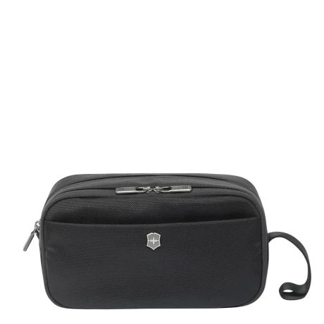 Toilettas uit de Werks Traveler serie van Victorinox. Ruim georganiseerde toilettas met meerdere elastische banden om je toilet artikelen in op te bergen. Ook het voorvak heeft dubbele steekvakken. Gemakkelijk schoon te houden en mee te nemen met ruime lus.