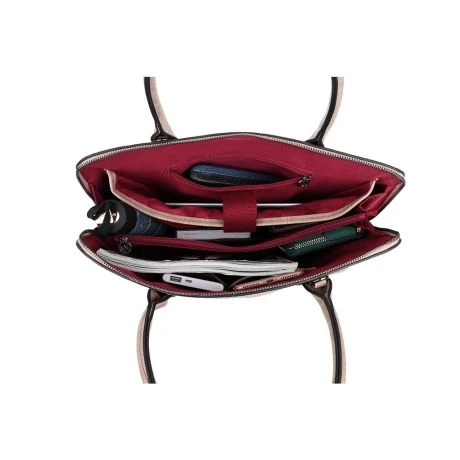 – Binnenzijde voorzien van meerdere vakken met ritssluiting, documentenvak en steekvakken